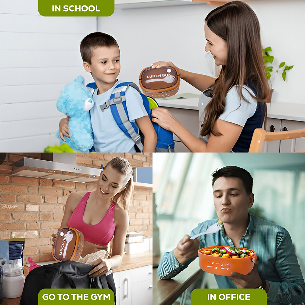Enjoy meals on the go with the CompactFresh 900ml Stainless Steel Bento Box-perfect for school, office, or travel. Built with a food-grade 304 stainless steel inner and BPA-free outer, it keeps food fresh and safe. Leakproof buckles and silicone sealing prevent spills. A built-in phone holder and included spoon add mealtime convenience, while its vibrant, compact design fits easily into any bag. Microwave, freezer, and dishwasher safe, it handles your busy lifestyle effortlessly.